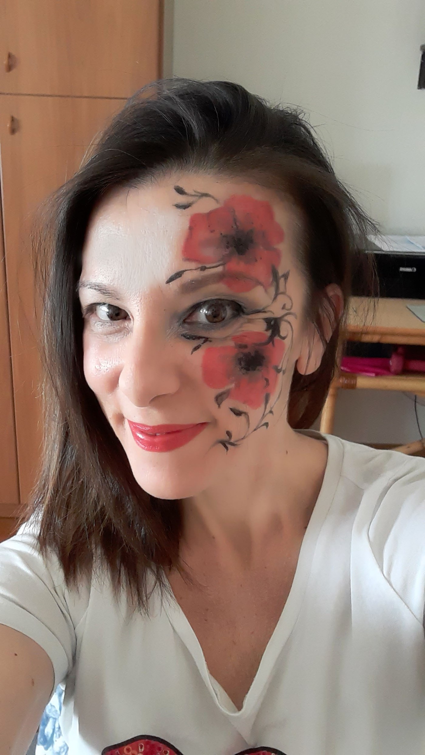 Questi sono giorno difficili per tutti, non starò qui a dilungarmi su una situazione tragica che stiamo vivendo tutti in maniera forte e prepotente. Sappiamo benissimo che tutti dobbiamo dare il nostro contributo STANDO A CASA, non uscire solo se strettamente necessario per salvaguardare la salute nostra e degli altri. Quindi dobbiamo trovare svaghi e cose da fare per occupare le nostre giornate, e cercare di regalarci momenti di leggerezza e di gioia il più possibile. Io nell’ordine ho iniziato a fare le pulizie di primavera, lavoro a maglia, faccio ginnastica, cucino, leggo, disegno e scrivo, insomma cerco di tenermi impegnata più che posso! Ieri poi mi è venuta questa idea di dipingermi la faccia. Era da un pò di giorni che ci pensavo ma non sapevo realmente se avrei combinato un pasticcio! Poi ho preso coraggio e viaaaaa!!!