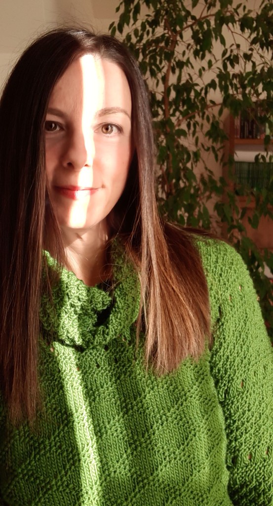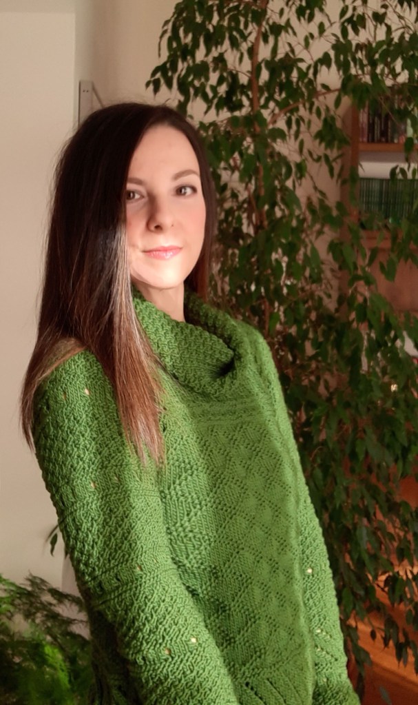 La cosa che mi piaceva di più era l’insieme delle fantasie di punti che la mia mamma aveva utilizzato per realizzarlo, grana di riso, punto traforato, greche a rilievo e trafori obliqui. Tra parentesi, è grazie a lei se ho imparato a lavorare a maglia così bene e mi sono appassionata a questo “lavoro” manuale così soddisfacente!