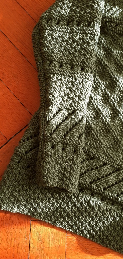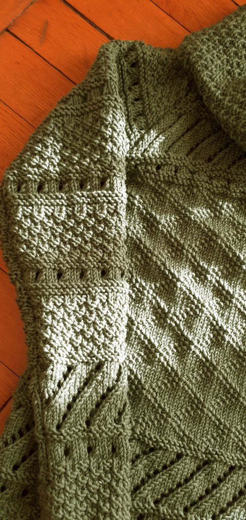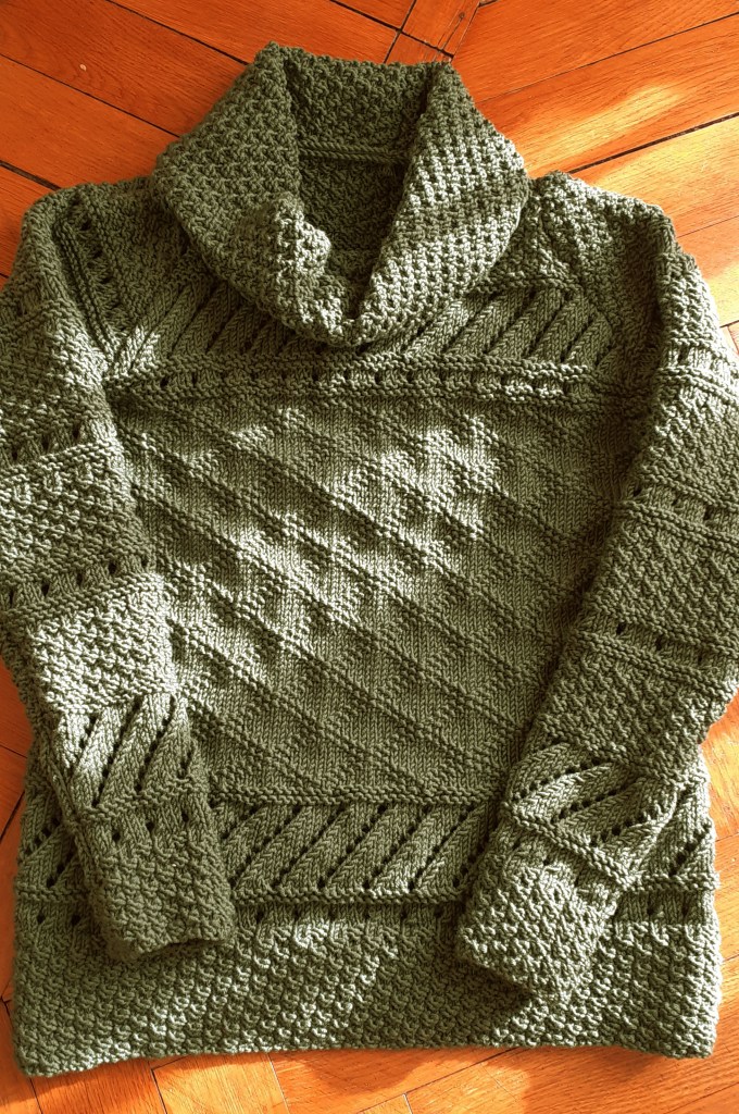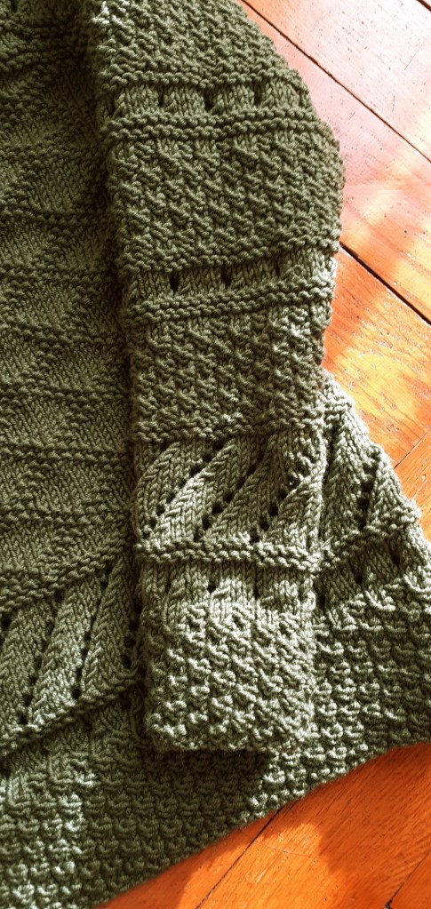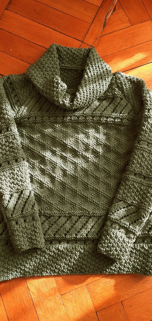 The thing I liked the most was the set of stitch patterns that my mom had used to make it, rice grain, lace stitch, embossed Greek and oblique openwork. Incidentally, it is thanks to her that I learned to knit so well and I am passionate about this so satisfying manual “work”!