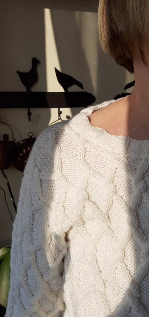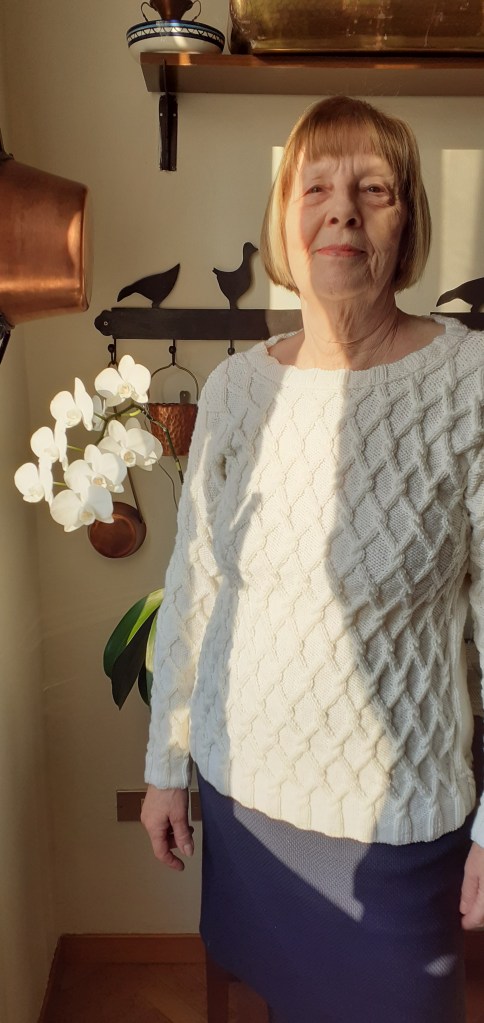 Questa volta è il turno della mamma! Dopo papà anche lei si “meritava” un bel maglione realizzato dalla sottoscritta! Per lei ho scelto un filato in pura lana color bianco panna, da lavorare con i ferri numero 5, quindi di medio spessore. Ho optato per un punto intrecciato che non presenta grandi difficoltà di lavorazione. Ed ecco il risultato! 🙂