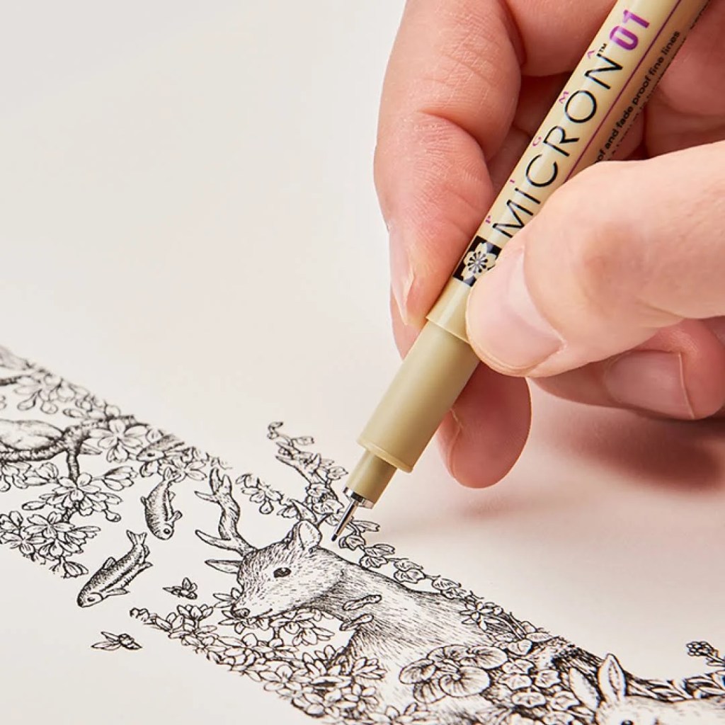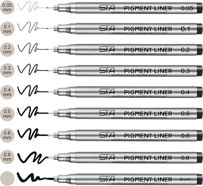 Altra valida alternativa è il modello Fineliner Beupro nero Pigment Liner micro del marchio Staedtler. Fondata nel 1835, la Staedtler è un’azienda tedesca che produce strumenti di scrittura per l’arte. È una delle aziende leader nel suo settore e fornitrice anche di strumenti per il disegno tecnico. La Fineliner non sbava sulla carta, la sua punta con cime in metallo superfine realizza linee sottili in formato 0.05mm 0.1mm , 0.2mm , 0.3mm , 0.4mm, 0.5mm , 0.6mm , 0.8mm, pennello morbido. La punta porosa in metallo e i vari formati assicurano un ottimo risultato per ogni tipologia di disegno, dalle linee sottili per la realizzazione di piccoli dettagli alle linee spesse, passando per profondità e definizione.
