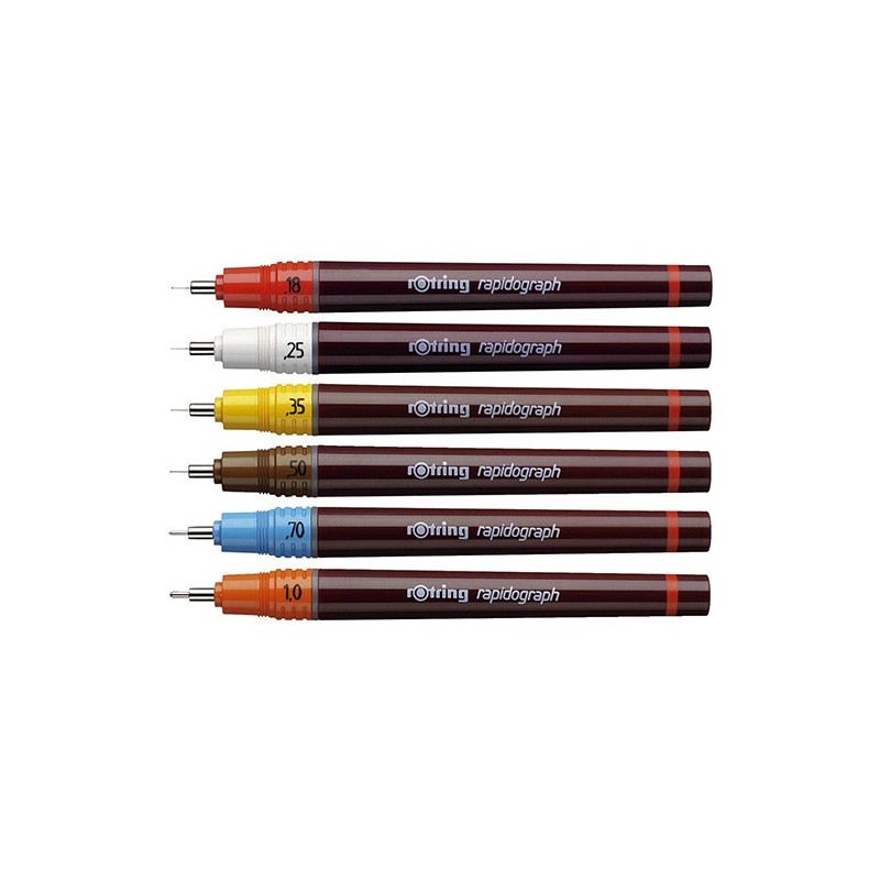 Dei modelli a china spicca quello che apre tutti i miei cassetti dei ricordi scolastici, il rapido! Quante tavole tecniche ho realizzato quando studiavo al Liceo Artistico! La penna a china ricaricabile Rapidograph Rotring è particolarmente facile da maneggiare e al posto del serbatoio d’inchiostro ha una cartuccia che si può sostituire una volta esaurita. Ci sono svariati spessori di tratto disponibili, dallo 0,1 fino allo 0,70 per un tratto molto più spesso.