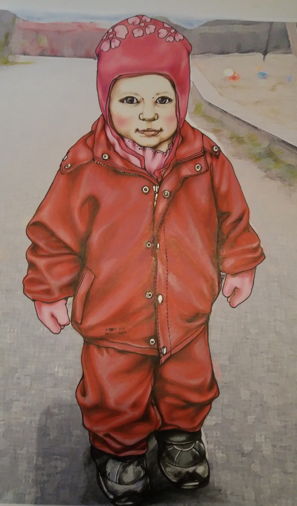 La foto che la ragazza mi indicò come quella da cui desiderava traessi ispirazione era stata scattata in montagna da lei e suo marito. La bimba era completamente avvolta in una tutina da sci e si intravedeva a malapena il suo piccolo viso, reso roseo dal freddo, con due occhioni spalancati e pieni di gioia. Era un vero amore! Ricordo ancora l’emozione quando le spedii il ritratto e lei lo ricevette! In seguito, mi mandò la foto della cameretta con il quadro appeso in bella vista! Fu per me una vera soddisfazione, perché mi resi conto di quanto avesse apprezzato il mio lavoro e, soprattutto, di essere riuscita a trasmetterle tutte le emozioni che avevo provato nel realizzarlo.