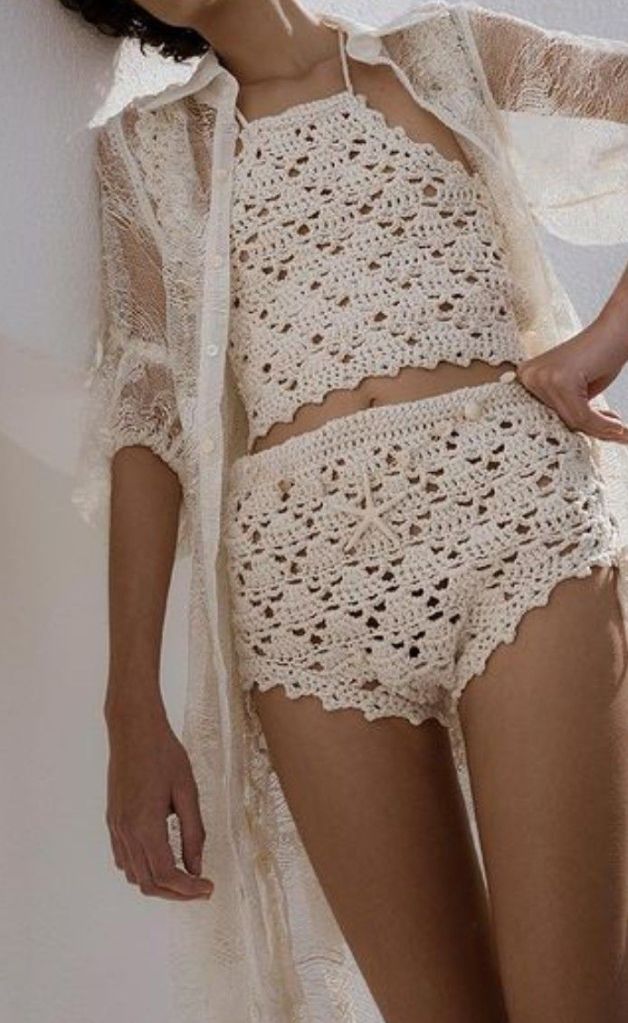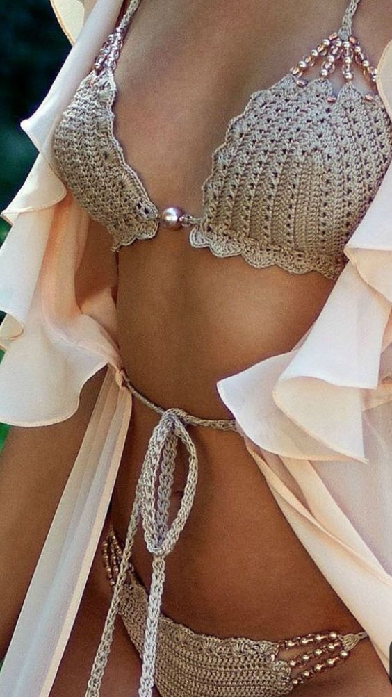 Layering Intelligente: Per evitare trasparenze indesiderate, molti costumi all’uncinetto sono foderati. Se il tuo non lo è, puoi indossare sotto un costume da bagno base color carne o in una tonalità che si abbini bene.