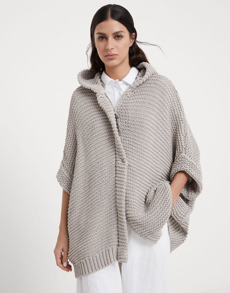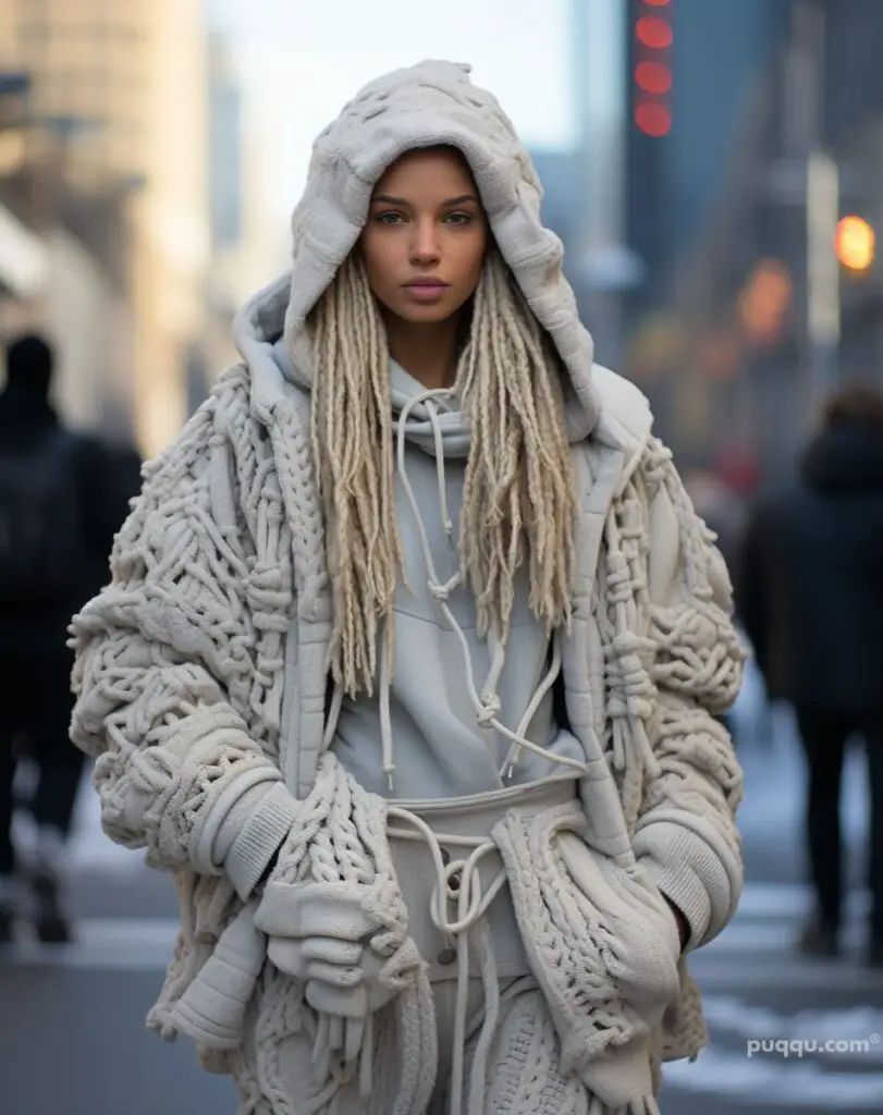 Capi iconici rivisitati: cardigan con cappuccio, il classico cardigan viene reinterpretato, a volte con un cappuccio simile a un foulard, per un tocco di originalità. Maglieria da sera, la maglieria esce dall’ambito casual per diventare un capo da sera, con maglioni e cardigan impreziositi da dettagli gioiello o abbinati a pezzi più glamour. Pullover incrociati, un tocco di raffinatezza si trova nei pullover con scollo incrociato, che aggiungono eleganza al capo. L'”allure maschile torna a influenzare il guardaroba femminile con tagli netti, completi rigorosi e blazer oversize”. Sebbene principalmente visibile nella sartoria, questa influenza si estende alla maglieria attraverso cardigan strutturati, blazer in maglia sartoriali o twin set in maglia con spalle definite. La “tendenza alla ricerca di potere” con le “spalline” suggerisce anche capi in maglieria con spalle più definite e assertive, conferendo un senso di forza.