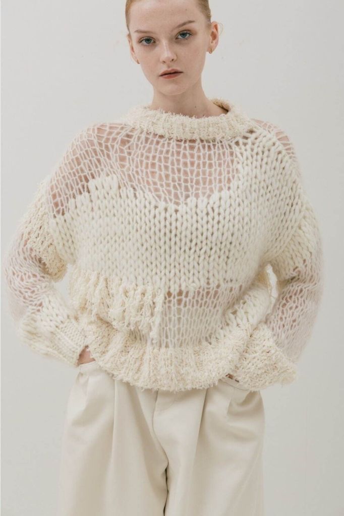 Volumi over e trame tridimensionali, la maglieria non è più solo un capo basic, ma diventa un elemento di design. Vedremo maglioni oversize con lavorazioni a trecce maxi, trame grosse e voluminose che creano texture ricche e visivamente interessanti. Jacquard e motivi geometrici, le lavorazioni jacquard tornano in auge, con disegni che spaziano dalle losanghe in chiave punk a fantasie più complesse. Uncinetto e maglia scomposta, c’è una ricerca di un’estetica “fatta a mano” che si traduce in capi all’uncinetto con un tocco Y2K e in maglie che sembrano volutamente “scomposte e ricomposte”, con un’attitudine quasi sperimentale.