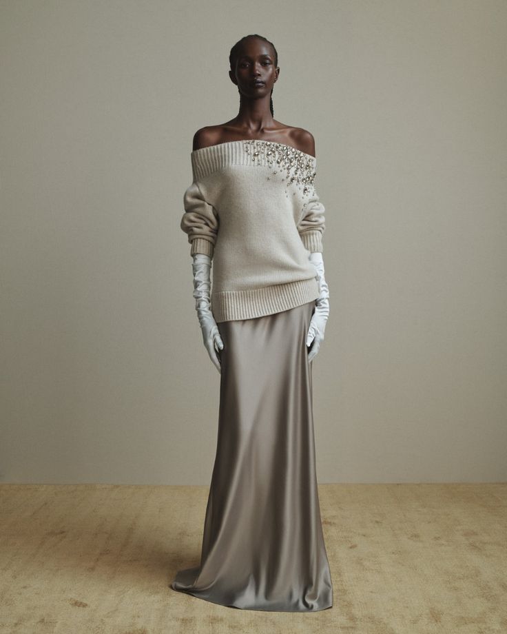 Stile e Volumi: dettagli cut-out e asimmetrie, non mancano elementi di rottura come i dettagli cut-out, che svelano porzioni di pelle in modo inaspettato, e i colli asimmetrici, che conferiscono un tocco moderno e dinamico. Maglia da capo a piedi, si assiste a una vera e propria “knitwear-mania”, con la maglia protagonista in ogni sua forma: abiti, gonne, cardigan, cappe, e look total-knit.