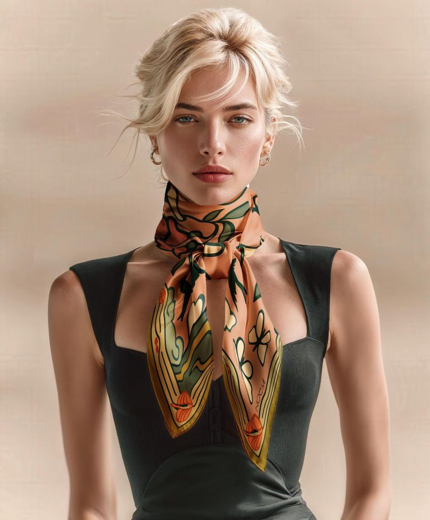 L’Effetto: Un tocco di raffinatezza da dandy o da star del cinema anni ’50. Funziona benissimo per riempire una scollatura a V. Ideale per: Sciarpe in seta o lana leggera, look da giorno eleganti. Come si fa: Piegala a metà per la lunghezza. Fai un nodo allentato con le due estremità sul davanti, appena sotto il mento. Sposta il nodo lateralmente o lascialo centrale.